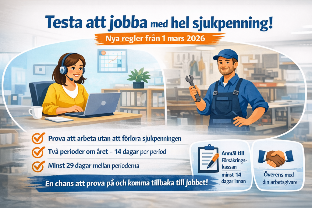 Från och med den 1 mars 2026 införs nya regler som gör det möjligt för anställda med hel sjukpenning att prova att arbeta – utan att förlora sin ersättning.